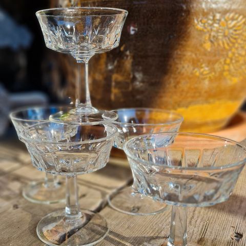 Glas, Små glas, Crema & Caffe, 2 små glas. Der står crema & caffe på.