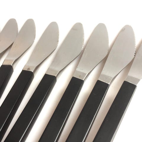 1 x steak kniv uden skær L. 22 cm til 75,- pr. stk.
