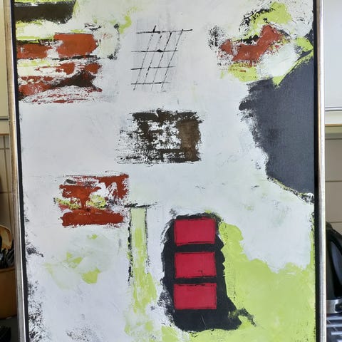 Stemningsfuldt og farverigt oliemaleri fra AW Venø i smuk ramme - lige til at hænge op.