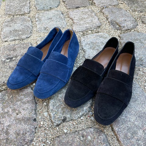 To par sko i ruskind sælges samlet. De har det klassiske smalle, elegante design fra ATP Atelier. De originale skoæsker og skoposer medfølger. Skal afhentes, sendes ikke.