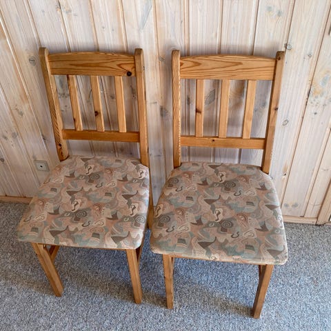 2 stole med lyst/gråligt betræk, ukendt producent