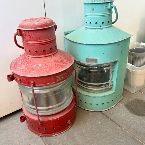 Fine originale skibslanterner i kobber. Styrbord og bagbord - med grønt og rødt lys. Prisen er pr stk
