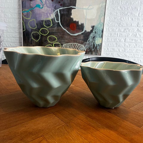 Skål fra Kahler i serien "Facetta", designet af Søren Thygesen i 2006 ( men først sat i produktion i 2016 ) Blank sort glasur med uglaseret hvid kant. Velegnet som salatskål, frugtskål eller anden form for serveringsskål.