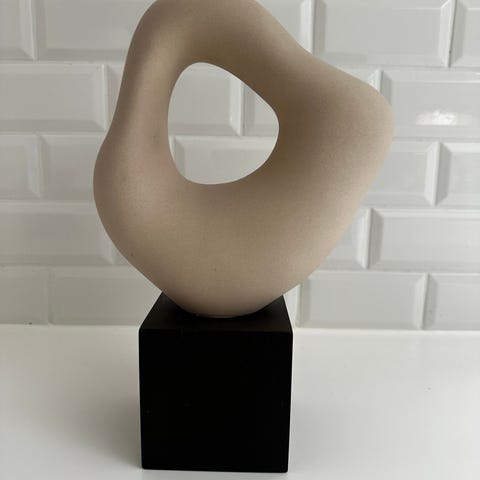 Smuk skulptur fra Bloomingville i hvid/natur på sort fod.