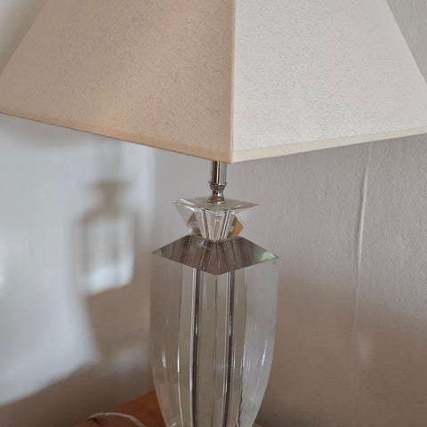 Udsædvanlig flot og stor bjergkrystal lampe. Mål: 50cm høj og 19kg.