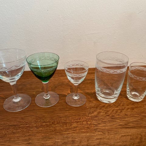 11 Sherry-/portvinsglas. Højde 10 cm. Pris: 250 kr