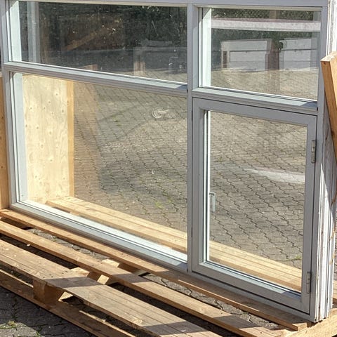 Vindue træ/alu 247*137,5 grå ud- indvendig m a+ glas