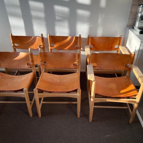 Går under navnet den spanske spisebordsstol, men stolen er fra 1984 hvor den hed jagtstolen.