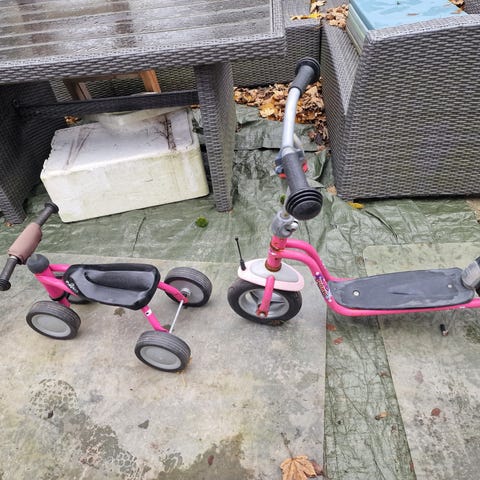 Puky løbehjul t de mindste samt gul legehjelm. Samlet pris