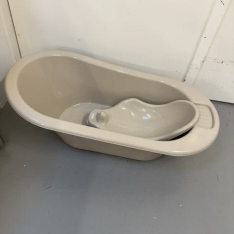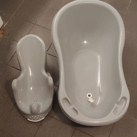 Vi sælger vores Bebejou badekar med indsats, samt en potte, toilet indsats og en vaskebalje.