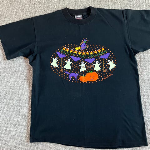 T-shirt, vintage retro, str. S, gul, bomuld, God men brugt, flyvende heks
