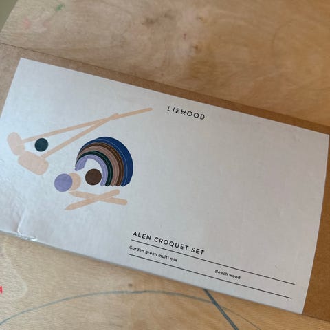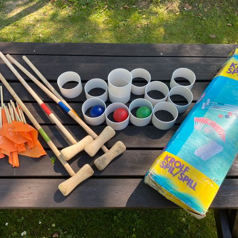Helt nyt croquet spil til børn med dyremotiver i træ. Aldrig brugt da vi fik 2 sæt i gave.