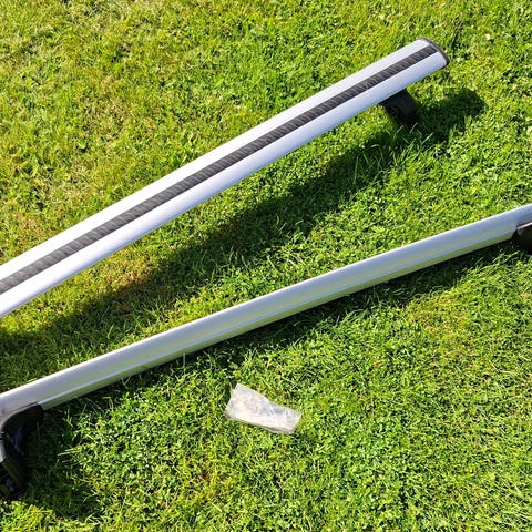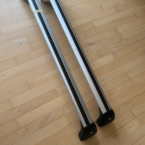Mazda tagbøjler i aluminium med sølvfarvet finish. Designet til montering på biler for at bære ekstra last som cykler, kufferter eller andet udstyr. Robust og velegnet til både privat og erhvervsmæssig brug.
