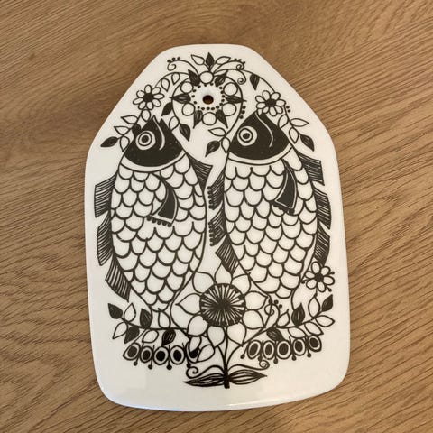 De fineste fajanceplatter/smørrebrædder fra norske Stavangerflint designet af Gro Pedersen Clausen i 1960erne.