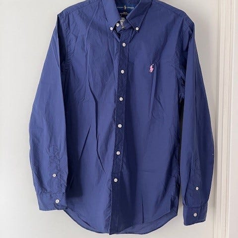 Ralph Lauren Featherweight Mesh skjorte i blå farve, størrelse XXL til mænd. Skjorten er lavet i let mesh-materiale, som giver god åndbarhed. Den har klassisk design med knaplukning og broderet logo på brystet.