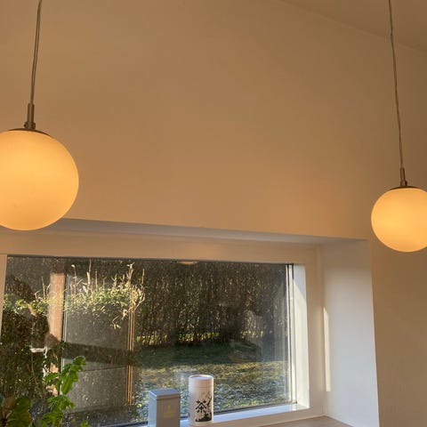To spændende glaslamper i mundblæst opalglas ( samme pris )