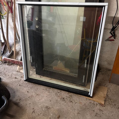 Træ/alu vindue m mat 3 lags rude hvid ind-udvendig
