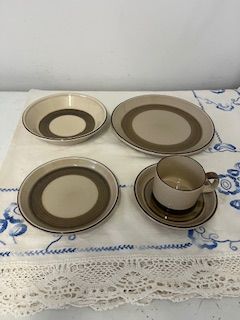 Congo stel fra Kronjyden i sort og kraftig gul (det er ikke alle billeder der viser hvor gult det er). Det er blevet brugt og har skår og brugsspor, men er ellers i fin stand.