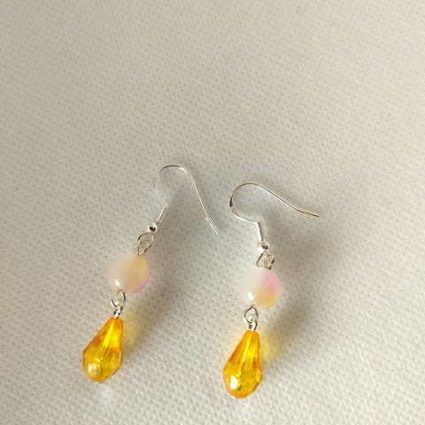Elegante øreringe med hvide perler og gulgrøn glasperler