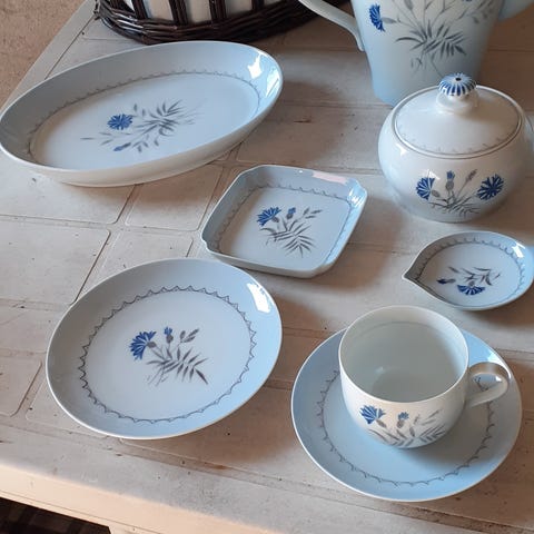 Blåt kornblomst stel. Fin stand, dog med nogle få skår/brugstegn.