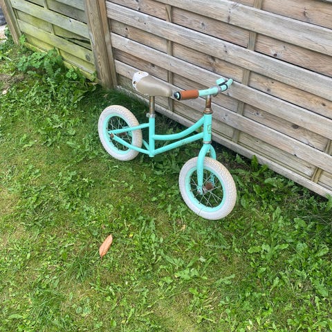 Mamameko - Woody Cykel Børnecykel med 12 tommer hjul, lavet af træmateriale i pink farve. Designet til børn med let og holdbar konstruktion.