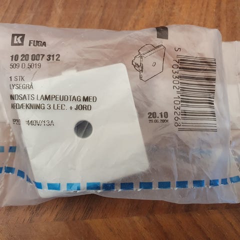 Vi har 1 stk. LK Fuga 50x50mm lampeudtag til drejestikprop i hvid.