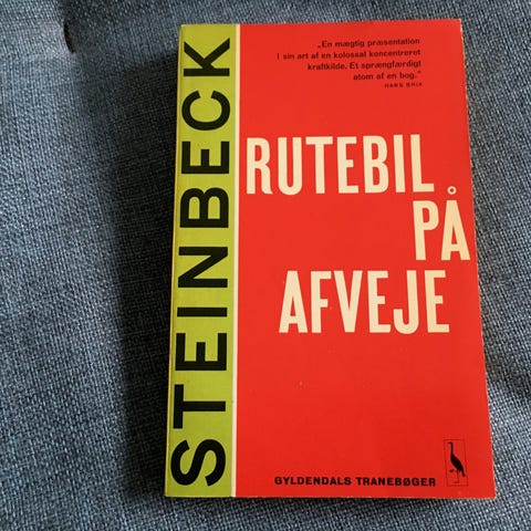 Steinbeck Rutebil På Afveje bog. Bogens omslag er grøn med rød og hvid tekst. Indeholder fortællinger af Steinbeck. Velegnet til læsere interesseret i klassisk litteratur.