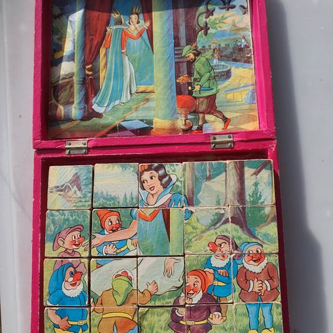 Alle dværgene fra Disney's klassiske tegnefilm. Figurerne er farverige og lavet i plastikmateriale. De er ca. 13 cm høje, og der står Disney i bunden.