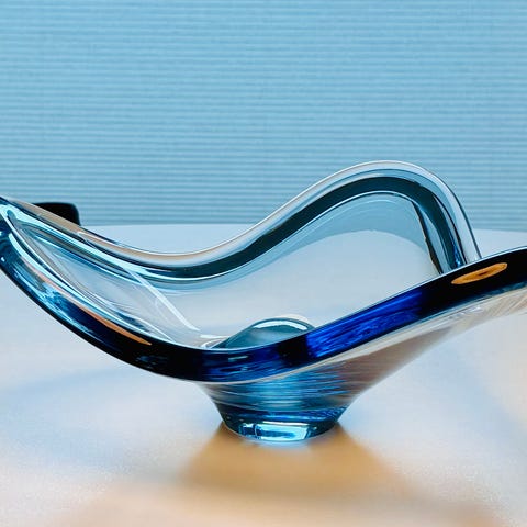 Smuk opsats i hvidt glas med smukke farver på den ene side. Er intakt og i fin stand - ingen revner eller skår. Usigneret, men formentlig fra Holmegaard af Per Lütken.