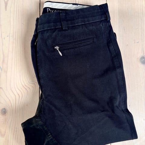 Pikeur ridebukser til kvinder i størrelse 72. Bukserne er i blå jeans-look og mørkebrun farve. Kan afhentes i Ebeltoft eller Århus