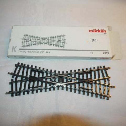 Marklin 2258 Kryds K skinner, skala H0, Kryds Nyt i æske H0 til K skinner . Vejl pris 209 Kr.