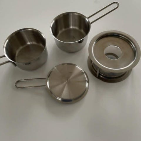 Eva Trio smørsmelter special edition. Rustfri stål med 24 kt. forgyldt hank og håndtag.