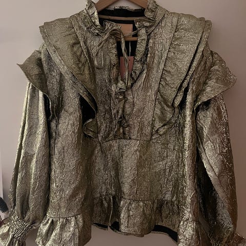 Bluse, Day, str. 42, Lys Rosa og sort, Ubrugt, Fest Bluse / Top med perler foran, godt og flot materiale nypris 3600 kun brugt 2gange