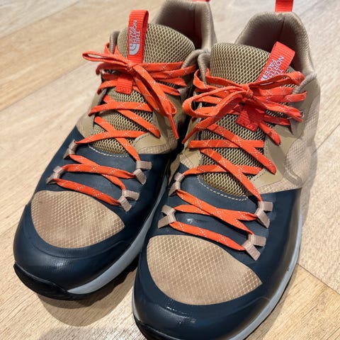 The North Face vandresko i størrelse 39 med blå/turkis og rød farve. Skoene er designet til vandring og har en slidstærk ydersål (vibram) med godt greb, egnet til udendørs brug. Efter min mening er skoene små i størrelsen og passer mere en 38. Derfor sælges, helt ubrugte.