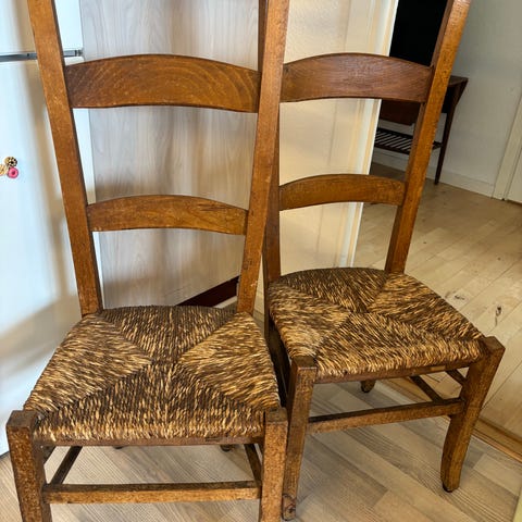 Træstole med stempler, haves 2 styk 400kr for det hele. Skal afhentes i Kokkedal