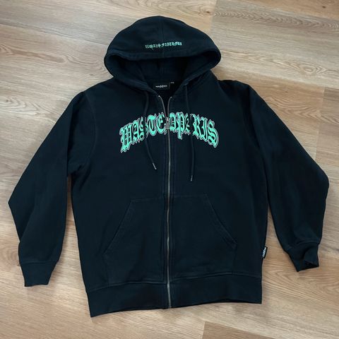 Frontprint med stort “WASTED PARIS” over brystet samt broderi “ALWAYS FAITHFUL” på hætten bagpå. Lynlås, kængurulomme og hætte med snøre.