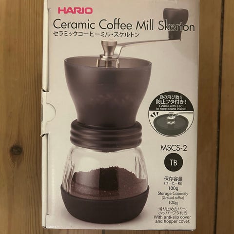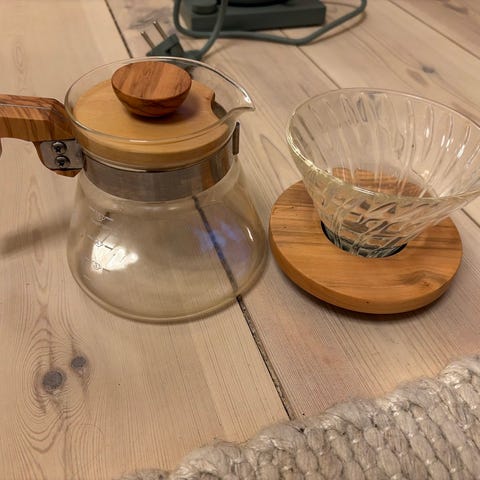Hario V60 I størrelse 01. Det er plastik modellen som holder på varmen under brygning. Der er små kosmetiske revner, men som ikke er rigtige revner i selve plastikken. Virker perfekt.