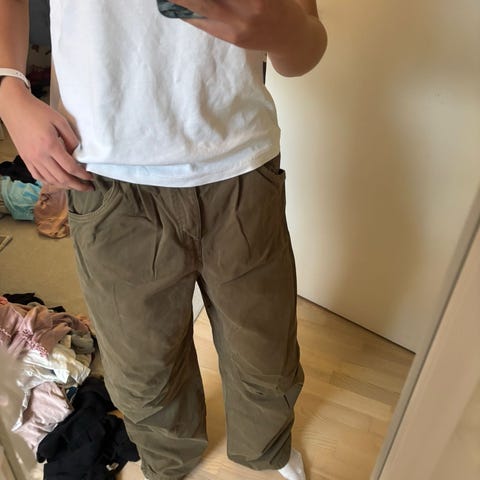 Bershka Bukser i størrelse 38 til kvinder. Bukserne er grønne og designet til dagligt brug. Materialet og pasformen er egnet til komfortabelt slid.