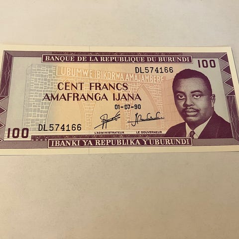 5 Francs 1967-1971 Burundi. Fejlpræget.
