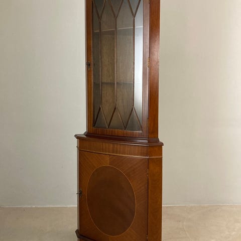 Antik hjørne vitrineskab i mahogni med glaslåger