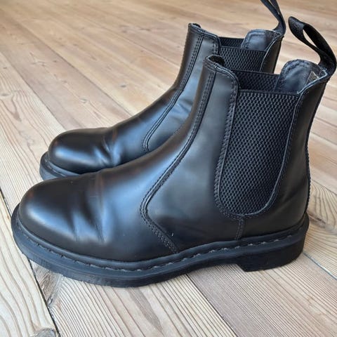 Fede støvler i all black fra Dr. Martens. God stand, ikke brugt specielt meget. Har dog et par enkelte ridser på snuderne og nogle hvide pletter, som jeg er helt sikker på kan dækkes med sort sværte. Alt i alt en sprød støvle her til efteråret!