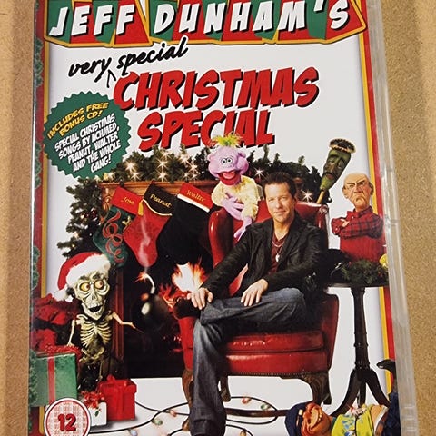 Jeff Dunham's Christmas Special DVD featuring a holiday-themed comedy performance. The DVD includes various characters and sketches suitable for entertainment during the Christmas season.
