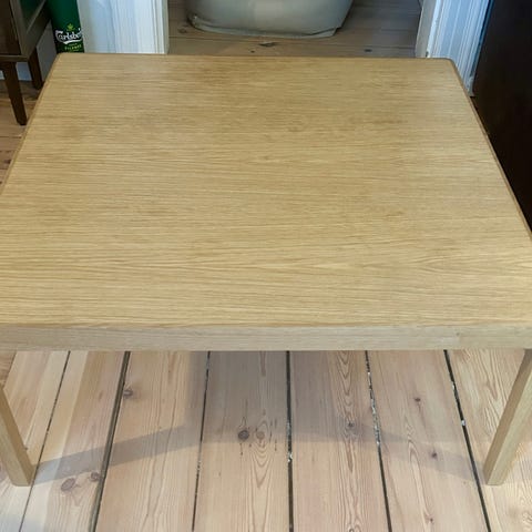 Meget meget fin og virkelig god kvalitets lille bord fra Muuto. Lidt mærker på træn, har ikke prøvet fjerne dem, men man får dem sikkert af. Skal helst hentes fra Islands Brygge, nypris 3995kr og bordet er en del af deres nuvarende kollektion