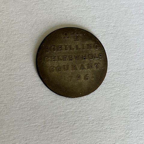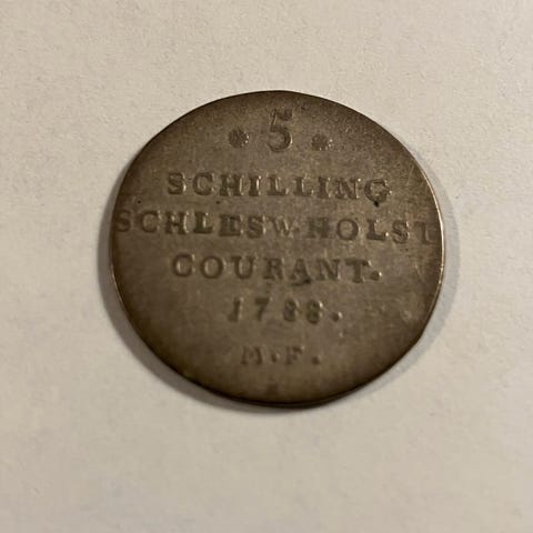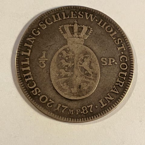 L-099 - Slesvig-Holsten 2,5 schilling / 1/24 speciedaler årg 1796 sølv 2,8 gr 0,37 lidt slidt eksemplar Pris kr. 155,-