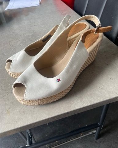 Koral røde Hilfiger sandaler i str 37, med en kilehæl på 10 cm. Brugt et par gange.