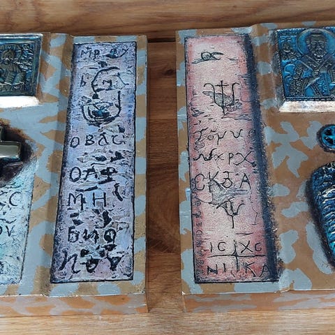 3 stk Mogens Leander skaber unika kunst i form af maleri, ikoner, objekter og bronzefigurer. Han er kendt for sit moderne formsprog med rødder i den ældgamle byzantinske ortodokse ikontradition