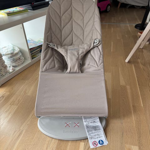 Ergonomisk formet, naturligt vuggende, kan bruges fra fødslen op til to år (først som vippe, derefter som stol ved at vende tekstilet).
