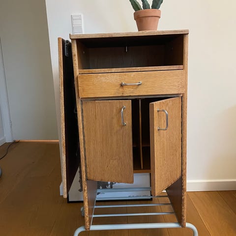 Gammelt kontor møbel. Brugt som sengebord.