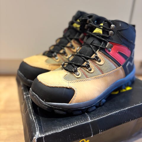 Sikkerhedsstøvler - brugt i ca. 2 måneder. Det ene snørrebånd er knækket.