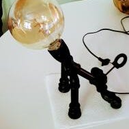 Rør-fittings, porcelæns fatning, hale lavet af Bodum peberkværn. Dekorationspære samt nye ledninger.